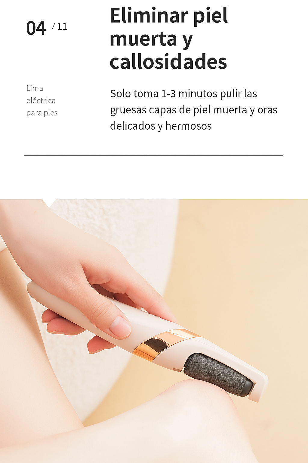 Di adiós a los pies agrietados, duros y ásperos. Con Pulípie tendrás pies suaves, lisos y perfectos al instante. Es recargable, potente y tan cómodo qye no volverás a sufrir con tu pies